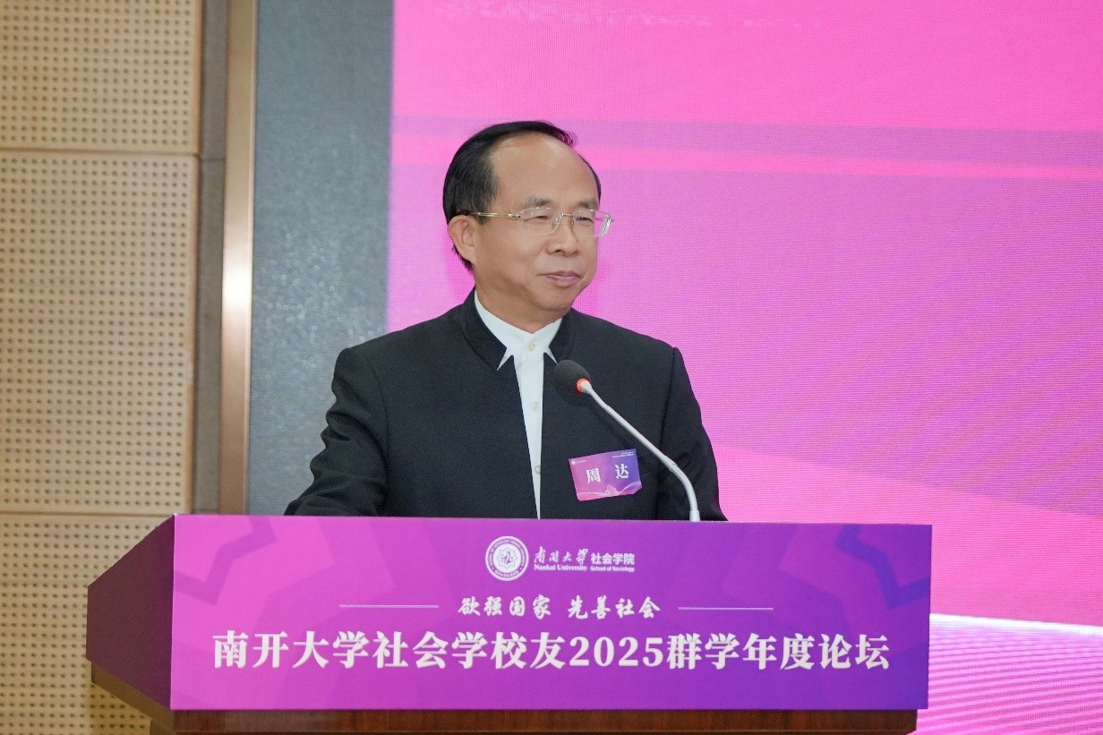 资深校董、南开校友总会社会学分会会长、1987级社会学硕士校友周达致辞。他说,国家之间的竞争归根结底是科技和治理能力结构现代化的竞争。中华民族要实现伟大复兴,离不开治理的现代化,离不开高校的持续性发展。污污漫