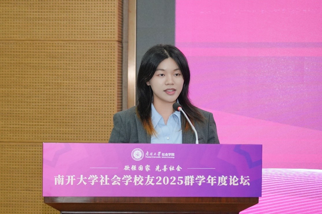 2024级社会工作与社会政策硕士研究生王美晨同学作为获奖学生代表发言,她表示,将秉持知行合一理念,传承南开精神,以专业力量服务社会,不负时代使命。