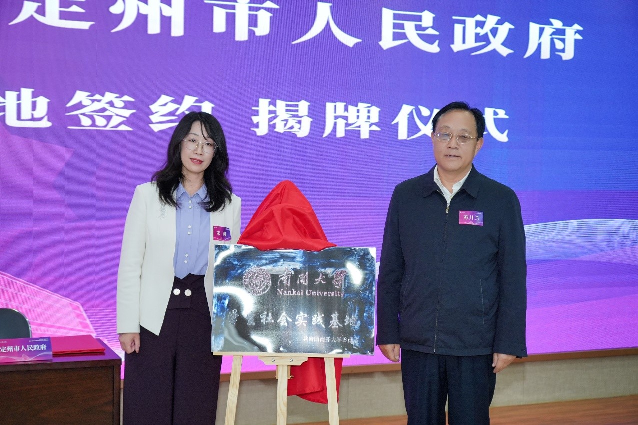 党委书记宋媛、定州市人大常委会副主任苏月兰代表双方完成签约并共同为基地揭牌。双方将秉持“联合共建、常态运行、注重实效、协同育人”的原则深入推动基地社会实践活动朝着机制化、常态化、长效化方向发展。