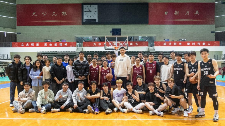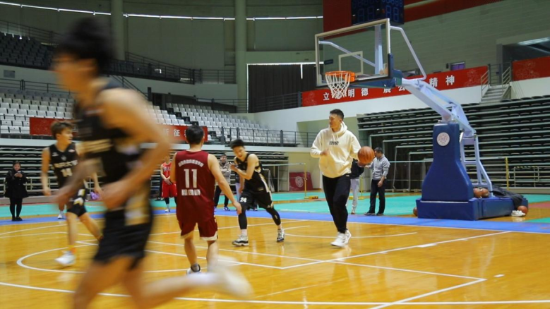 活动中,我校教工篮球队2023年总冠军队——首届五虎杯获得者周恩来政府管理学院篮球队、我校学生篮球队和周鹏共同开展了一场篮球友谊赛,比赛现场气氛热烈,抢断、突破、跳投,行云流水的动作一次又一次地引爆了现场的气氛,一阵阵欢呼呐喊声和掌声响彻篮球馆。