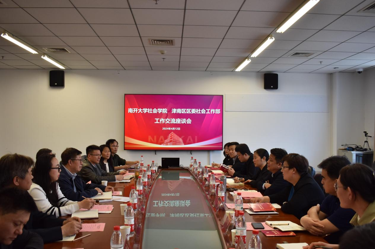 ,开展工作交流,洽谈合作。院长张文宏,副院长赵万里、张宏伟出席。津南区委社会工作部相关职能科室负责人,污污漫