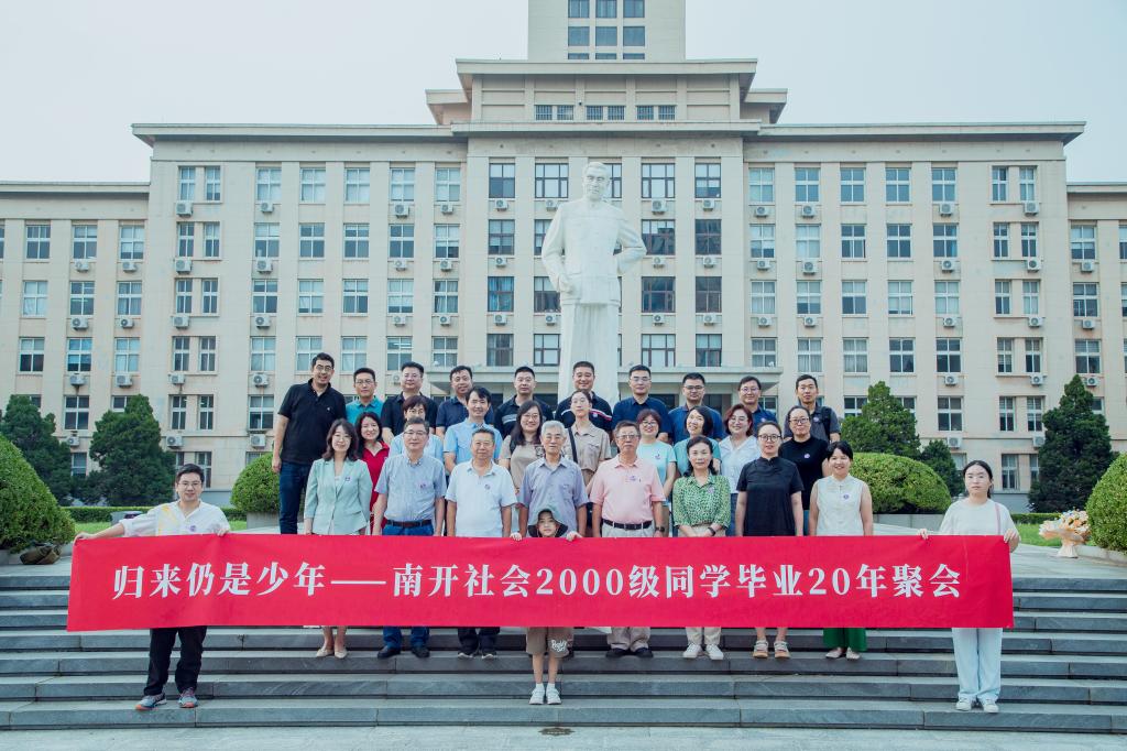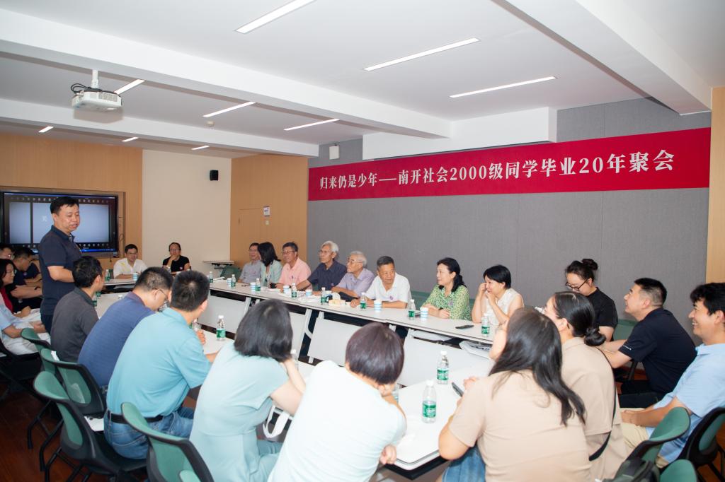 院长张文宏、院党委书记宋媛、副院长赵万里、张宏伟,老教师代表侯钧生、王处辉、白红光、陈钟林,2000级本科班导师黄晓燕参加活动,近20名校友欢聚母校,共叙师生情谊,追忆往昔南开时光。