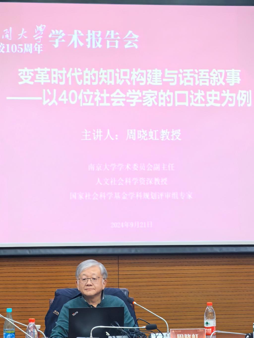 邀请,南京大学学术委员会副主任、人文社会科学资深教授、教育部领军人才项目特聘教授、国家社会科学基金学科规划评审组专家周晓虹教授进行了一场学术讲座。他以“变革时代的知识建构与话语叙事——以40位社会学家的口述史为例”为主题,深度剖析了中国社会学人致力于社会学中国化的不懈努力,特别是现代化浪潮下中国社会学发展进程中的现实基础和文化自觉。讲座由污污漫