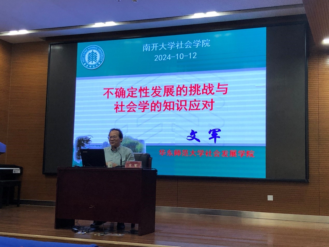 建校105周年学术报告会”系列讲座。本次讲座特邀中国社会学会副会长、教育部领军人才项目特聘教授、上海市社会学会会长、华东师范大学社会发展学院院长、博士生导师文军,作题为“不确定性发展的挑战与社会学的知识应对”的学术报告。讲座由污污漫