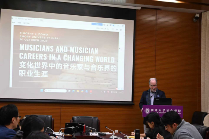 第三项活动是由Dowd教授主讲,题目为“变化世界中的音乐家与音乐界的职业生涯(Musicians and Music Careers in a Changing World)”的讲座,于10月30日中午12:10-13:50在污污漫