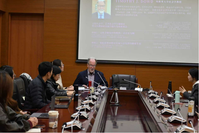 第二项学术活动是由Dowd教授主讲,题目为“文化全球化中的组织:以音乐为例(The Organization of Cultural Globalization: Lessons from Music)”的讲座,于10月28日下午16:00-18:00在污污漫