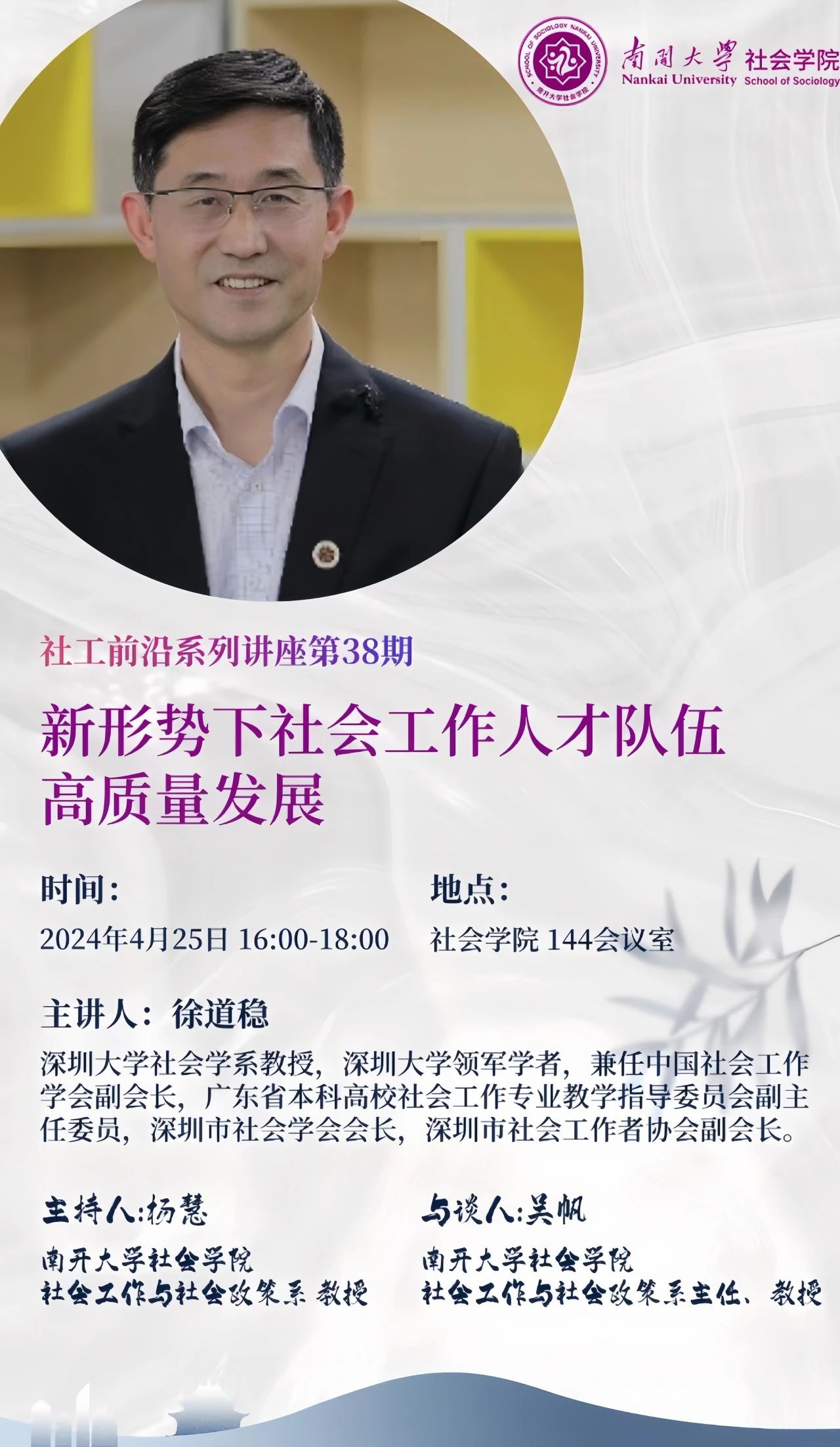 主讲人:徐道稳(深圳大学社会学系教授、深圳大学领军学者,兼任中国社会工作学会副会长,广东省本科高校社会工作专业教学指导委员会副主任委员,深圳市社会学会会长,深圳市社会工作者协会副会长)