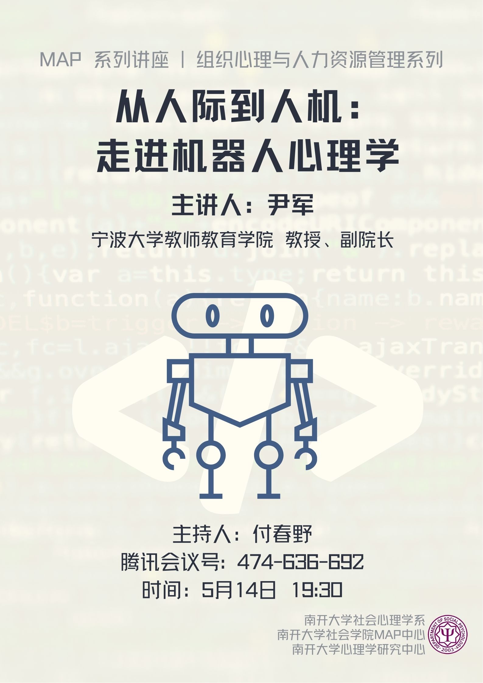 内容简介:随着人工智能技术的发展,具有一定社交功能的机器人(即社会机器人)已经走进人们的日常生活,在诸如护理、教育以及家庭陪伴等更为广阔的领域为人类服务。社会机器人的设计不仅涉及算法上的开发,而且涉及基于人类的社交心理特性,被人类接受且符合人类交互要求的功能特性的开发。据此,研究者提出了机器人心理学(robotic psychology),认为应从心理学的视角,将人类之间的社会交互规律应用于机器人的开发,并探索人类如何感知和理解机器人的行为,以设计符合人类社会认知特性的社会机器人,从而优化人机之间的社交互动,提高人际交互的效益。本报告将分享机器人心理学的前沿知识,并探讨如何构建共生的人机协作关系。