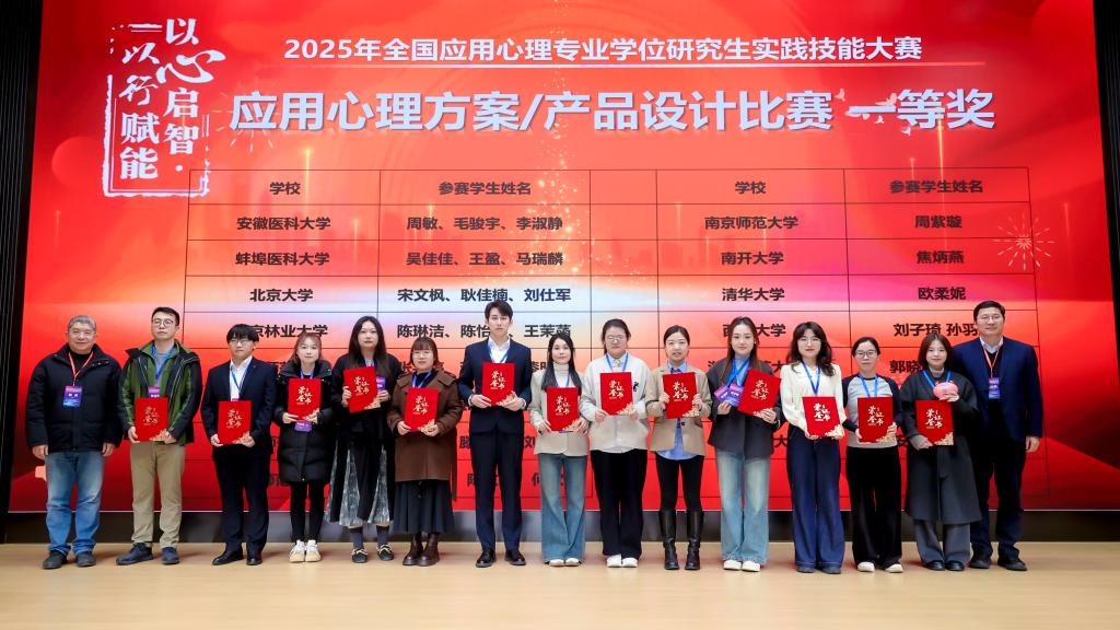 12月6日至7日,2025年全国应用心理专业学位研究生实践技能大赛在华东师范大学圆满落幕。本届大赛由中国学位与研究生教育学会应用心理专业学位工作委员会和华东师范大学心理与认知科学学院联合主办,吸引了来自全国146所院校的641个作品同台竞技。大赛旨在深化应用心理专业学位研究生培养模式改革,强化实践育人环节,提升学生解决实际问题的综合能力。