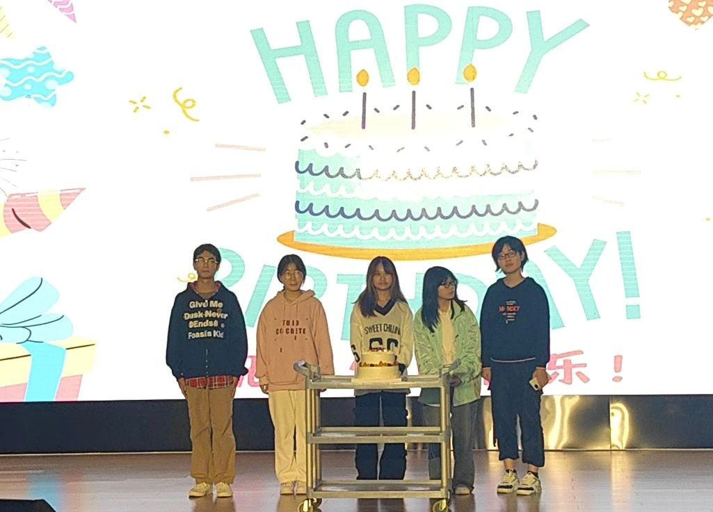 现场师生共同庆祝,分享蛋糕与喜悦